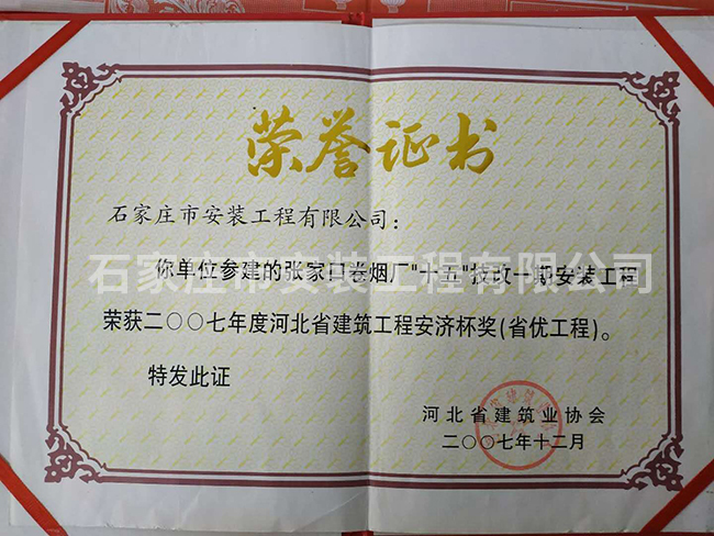 2007年度河北省建筑工程安濟杯獎(省優(yōu)工程)